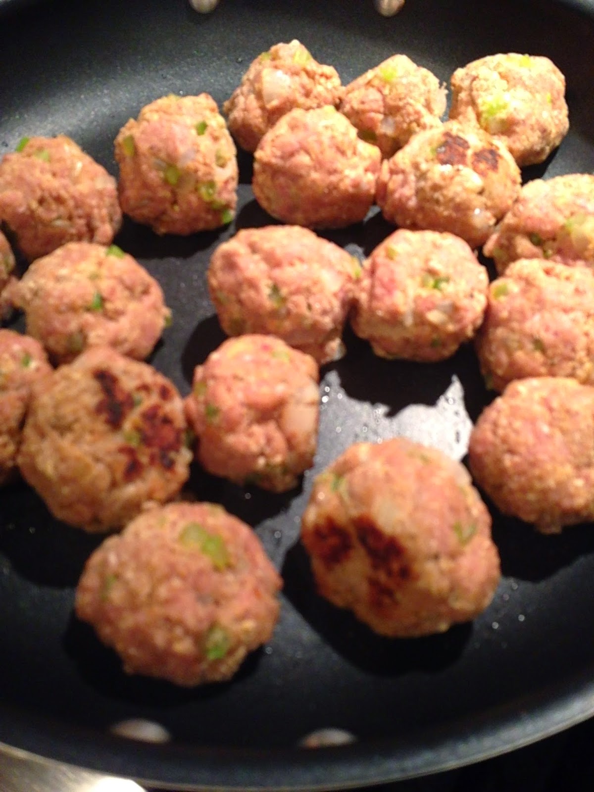 5. Heat and spray large fry pan with oil. Brown meatballs in pan.